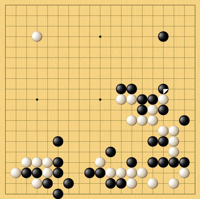 本局屠晓宇执黑先行,序盘阶段两人落子如飞,黑棋下出了气势。但行至第57手,屠晓宇突然选择了保守的在外部打吃,导致白棋右边的大块棋连在一起,顿时没了后顾之忧。如果当时黑棋长出作战,本可将战局导入更有利于黑棋的局面。