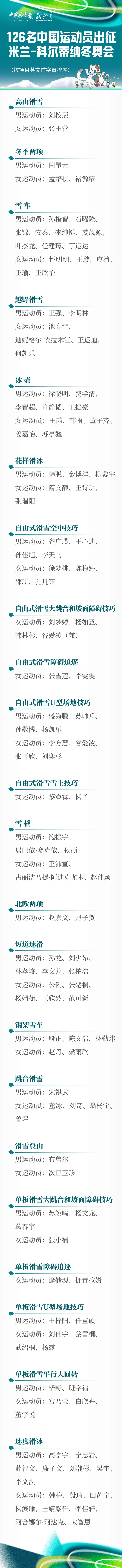 虎扑01月27日讯 据新华社报道,第25届冬奥会中国体育代表团今天正式成立。代表团共由286人组成,其中运动员126人(女子68人,男子58人),工作人员160人,将参加7个大项15个分项91个小项的比赛, 是我国冬奥会境外参赛项目最多、运动员规模最大的一届。