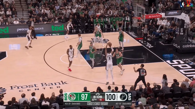 本场马刺赢得并不容易,第四节,文班亚马+瓦塞尔联手将分差扩大到两位数,但最后时刻,凯尔特人又在怀特、小罗恩哈珀、塔图姆带领下疯狂追分。