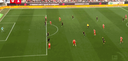 第45+4分钟,莱默尔倒三角回传,路易斯-迪亚斯破门,拜仁2-0!